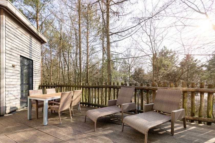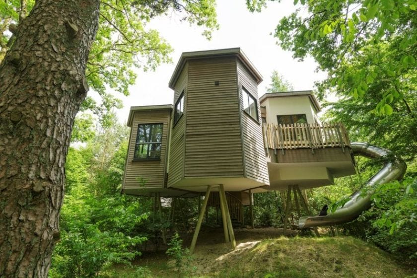 Zwei Ferienhäuser auf Baumkronenhöhe mit wabenförmigem Grundriss, offenem Kamin und Terrasse – ohne das typisch urige Baumhaus-Feeling, jedoch mit viel Komfort und einem umfangreichen Freizeitangebot. Mit zwei Schlafzimmern bietet das Baumhaus Platz für bis zu 4 Personen. Im Park befindet sich das Erlebnisbad Aqua Mundo mit Themensauna und Spa-Bereich und außerhalb lädt die Lüneburger Heide zu Ausflügen ein.