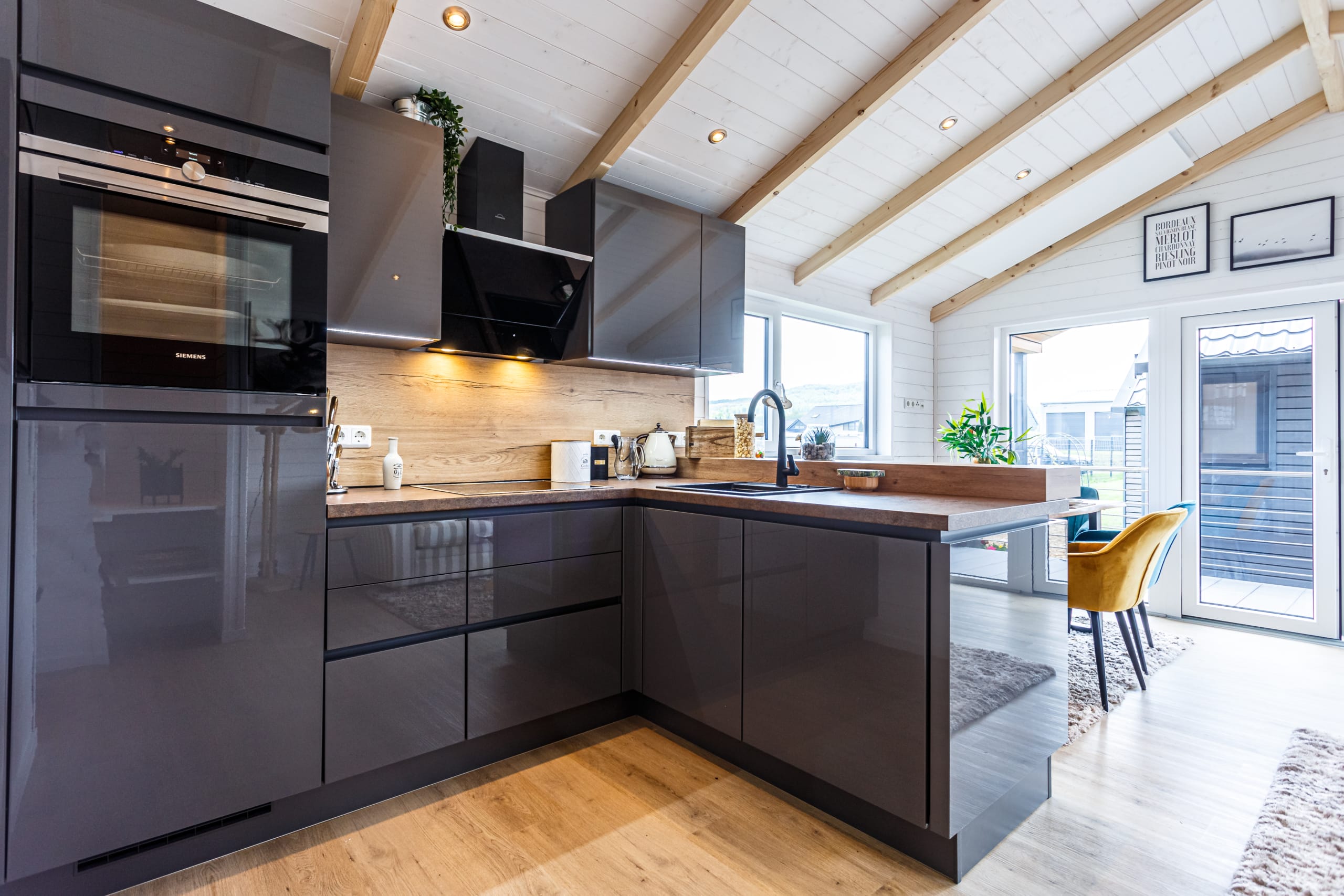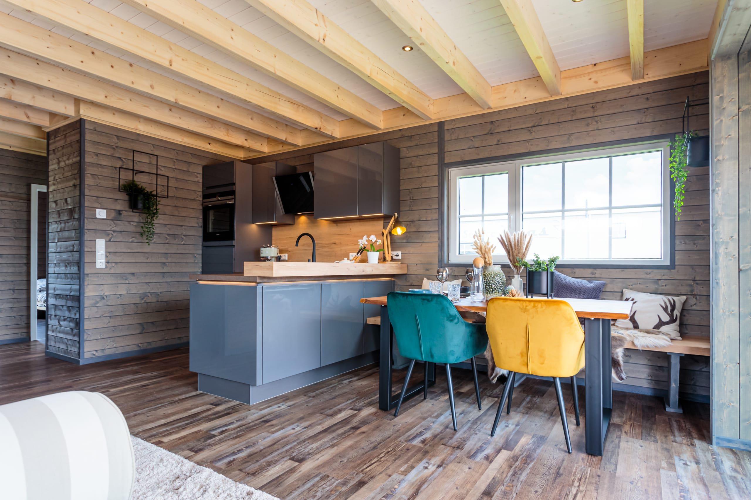 Das Chalet Canada kombiniert auf 46 m² zwei Schlafräume, ein Badezimmer mit großer Dusche und einen großen Wohn-/Essbereich inkl. Küche. Durch die moderne Optik, kombiniert mit natürlichen Rohstoffen, sorgt das Haus für eine zeitlose, moderne und gleichzeitig gemütliche Atmosphäre. Das absolute Highlight dieses Hauses ist die große überdachte Terrasse, die fest mit dem Haus verbunden ist. Ein echter Wohntraum, oder?