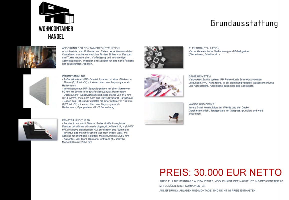 schlüsselfertig ab EUR 30.000 exkl. Mwst zzgl. Transport bei 2 EUR pro Kilometer
