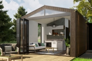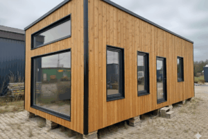 EcoCocon Litauen – Strohbausystem, das mit individuelle Bauvorhaben ermöglicht. Angeboten wird auch ein Bausatz für ein Kleinhaus mit gut 60 qm Wohnfläche (inkl. Schlafgalerie) und idealer Dachneigung für eine PV-Anlage. | Passion Houses Estland – Modulhäuser ab 40 qm Wohnfläche mit integrierter Terrasse. Holzständerbauweise mit Mineralwoll-Dämmung und Holzverkleidung, Lüftung mit Wärmerückgewinnung, Luft-Wärmepumpe. Intelligente Grundrisse. | Cahute Frankreich – Von Cahute kommen Tinys im fröhlichen Stil einer rollenden Strandhütte. Mit der Reduktion auf 7,3 qm Wohnfläche und dem Aufbau auf einem wendigen Einachs-Trailer ist der Spagat zwischen Caravan und Häuschen gelungen. |