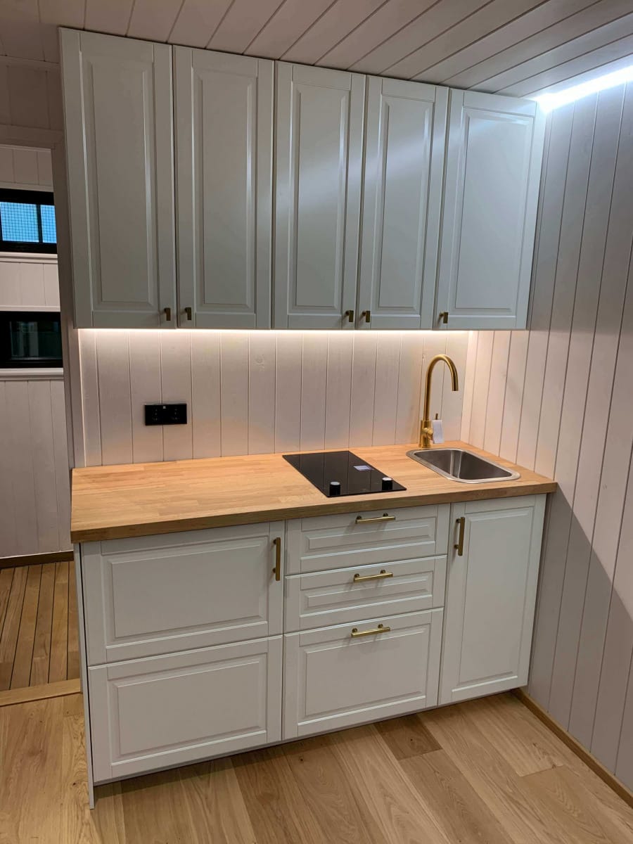 Mit einem umbauten Raum von gut 32 Kubikmetern ist das theoretisch möglich. Es ist dann sinnvoll, gleich in die Sonderanfertigung mit Waschraum und Küche zu investieren. Die Installationen sind dem kleinen Raum angepasst und intelligent integriert. Wer Minimalismus lebt, wird sich im nachhaltigen Tiny House wohlfühlen. Wer mehr Wohnraum wünscht, wählt am besten ein zweites Modul dazu. So entsteht ein nachhaltiges Sommerhaus.