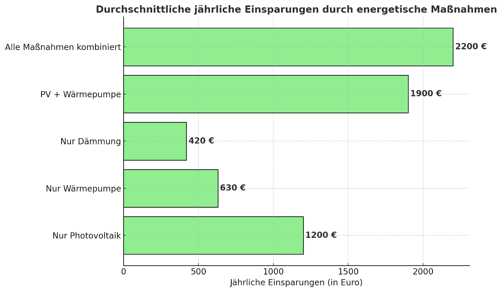 Um langfristig maximale Einsparungen zu erzielen, lohnt es sich, deine Solaranlage im Rahmen einer umfassenden energetischen Sanierung zu betrachten. Dazu gehören:- Installation einer Wärmepumpe, die ideal mit Photovoltaik kombiniert werden kann, um Heizkosten deutlich zu senken.
