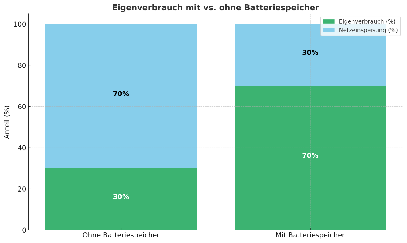 - Batteriespeicher erhöhen den Anteil deines selbst verbrauchten Stroms erheblich.