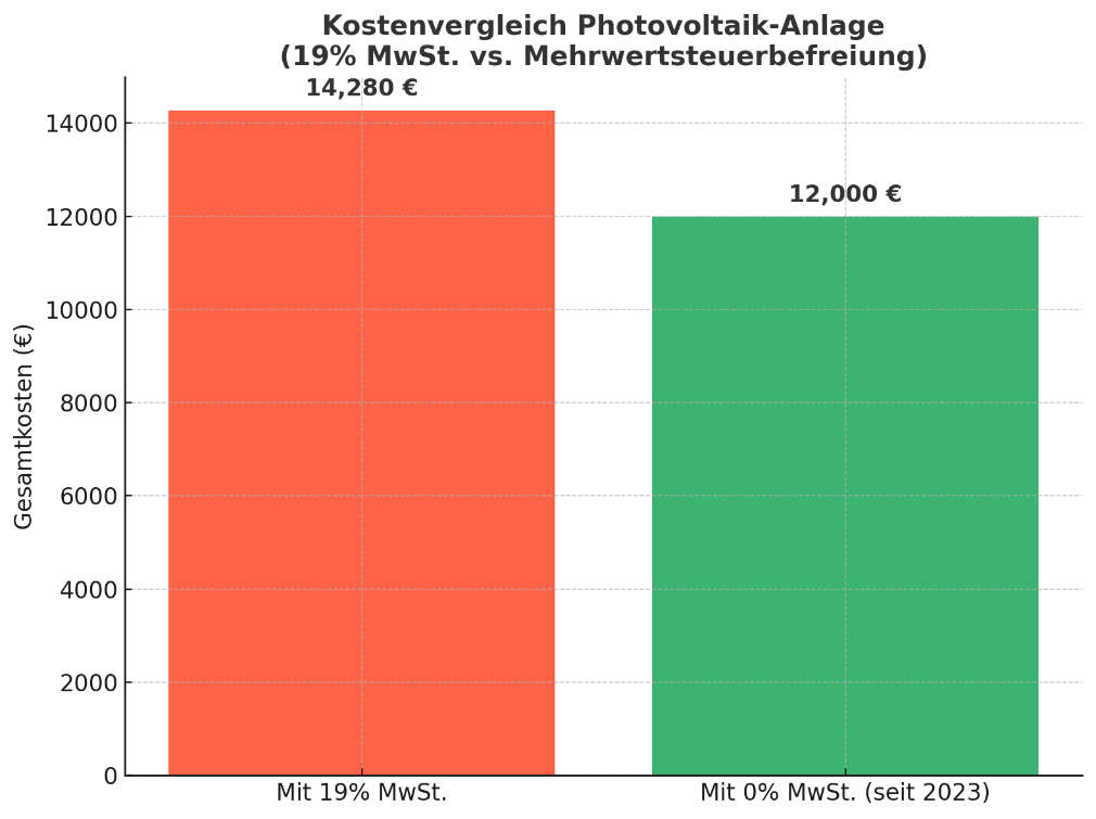 - Mehrwertsteuerbefreiung (0 %) auf Solaranlagen seit 2023.