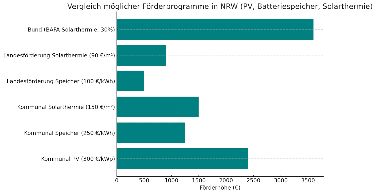 • Kommunale Förderungen bieten zusätzlich bis zu 10.000 € (z.B. Düsseldorf).